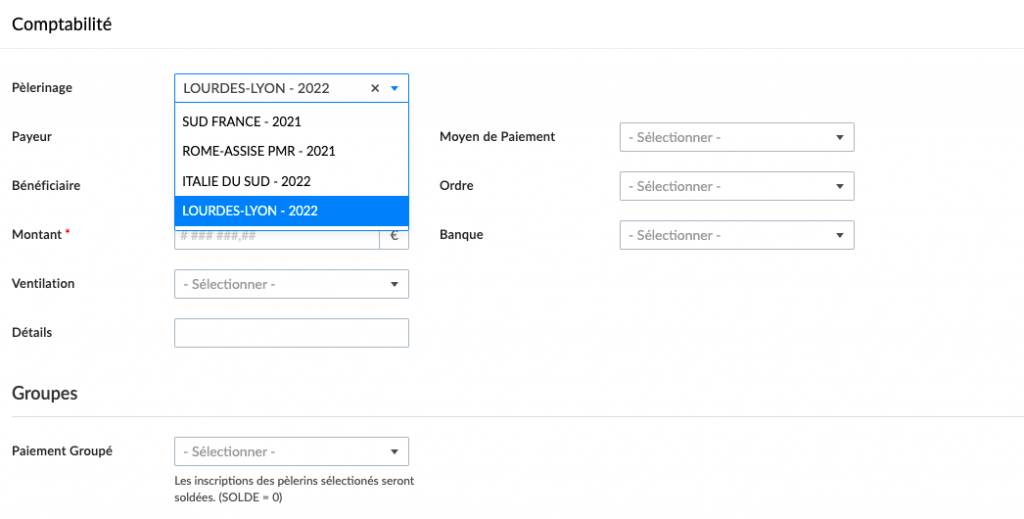 ÉTAPE 1 : CHOISIR PAIEMENT GROUPÉ